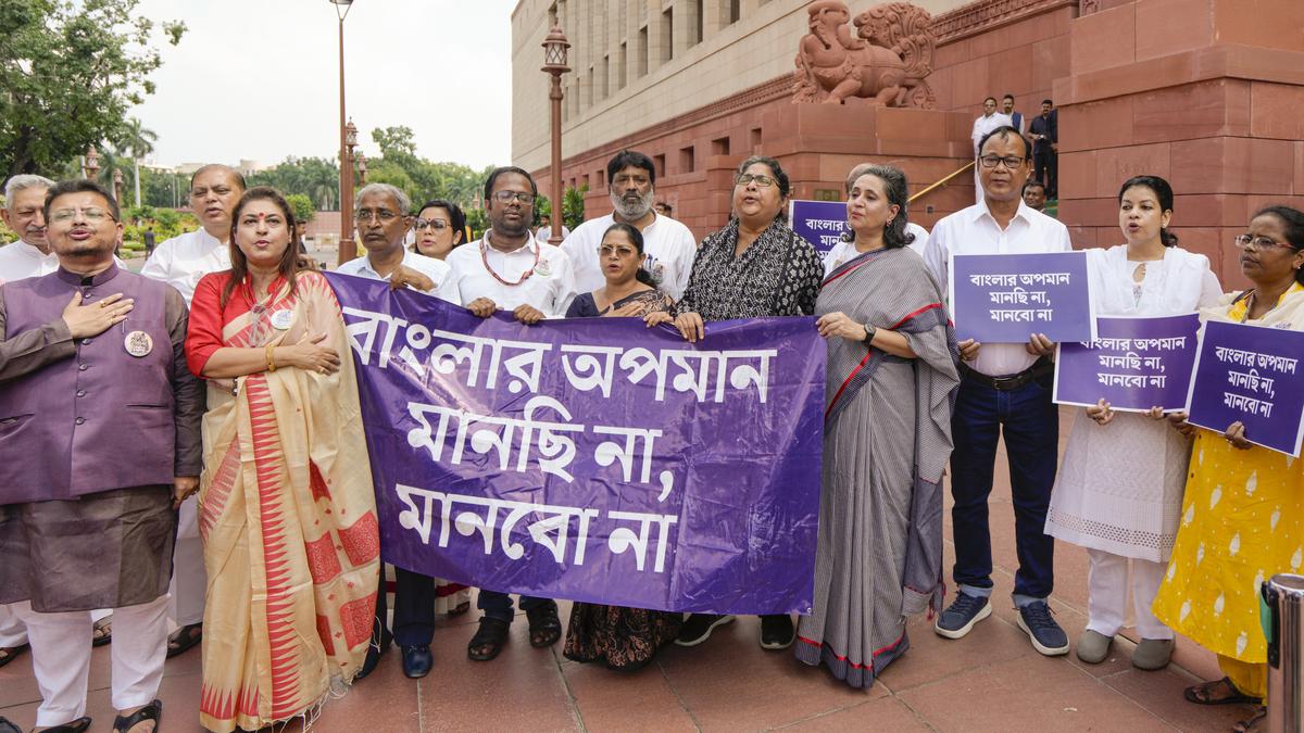 The TMC also alleged that their MP Abu Taher Khan, who is unwell, was also “manhandled.” On Wednesday (August 20, 2025) Opposition MPs rose in protest against the introduction of the three draft laws in the Lok Sabha . The opposition MPs raised slogans, marched into the well of the house, and tore copies of the bills. At one point, TMC members tore the bill and threw the bits of paper towards the Home Minister Amit Shah who was moving a motion to refer the Bills to a joint committee of Parliament.