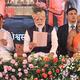 Prime Minister Narendra Modi and Paryaya Putthige Mutt seer Sugunendra Teertha Swamiji during Laksha Kantha Gita Parayana programme in Udupi on November 28, 2025.
