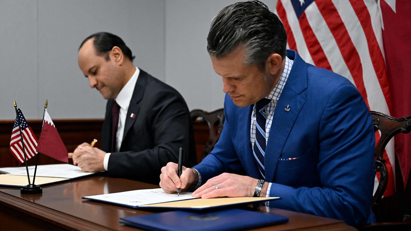 Pete Hegseth said “Today we’re signing a letter of acceptance to build a Qatar Emiri air force facility at the Mountain Home Airbase in Idaho. It’s just another example of our partnership.”